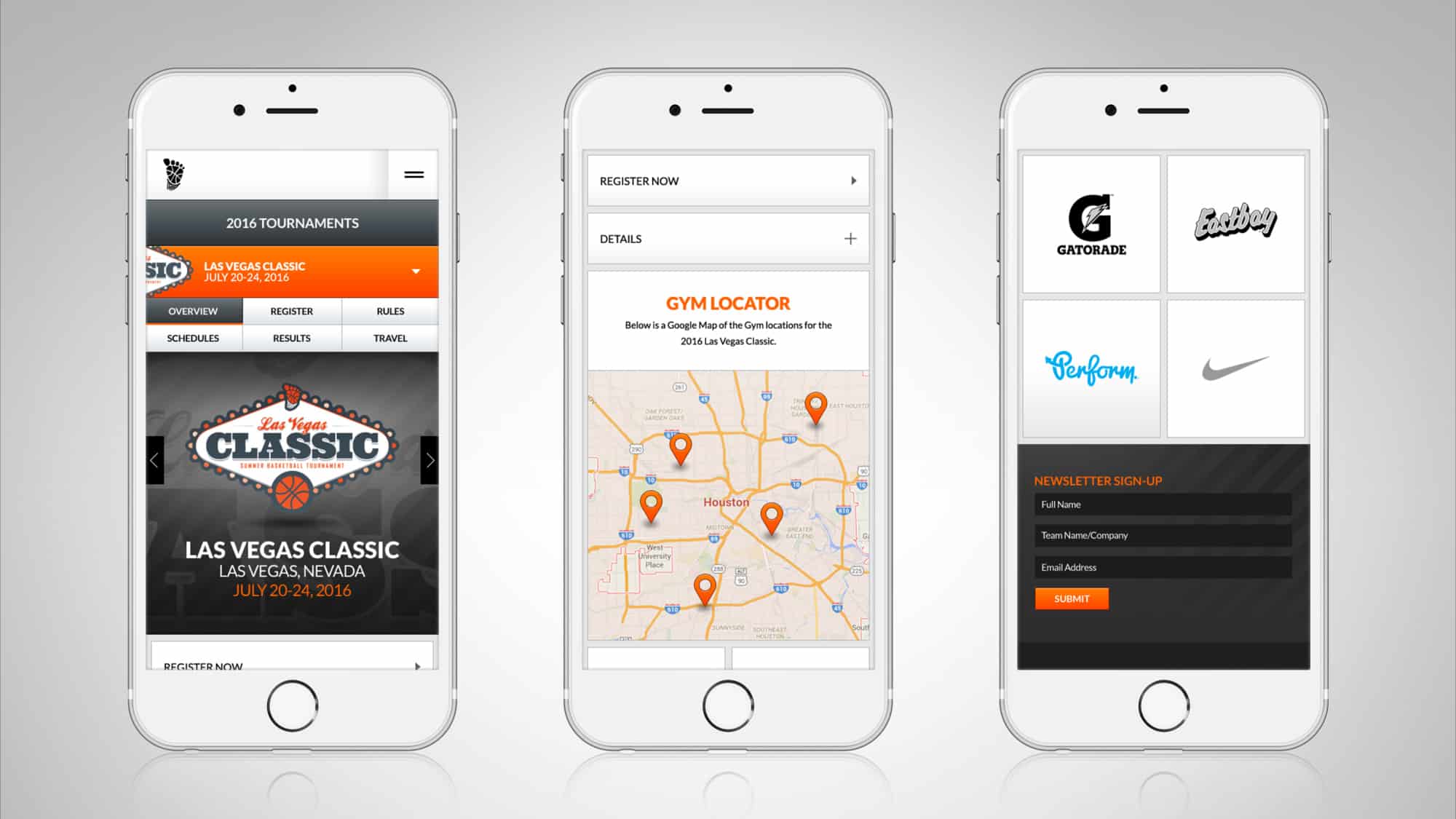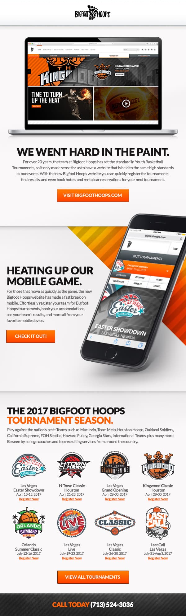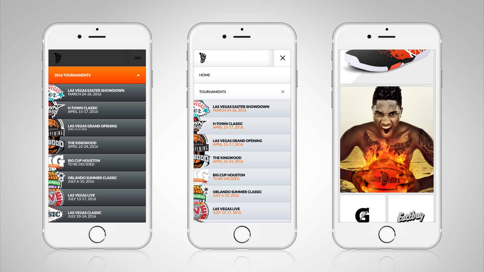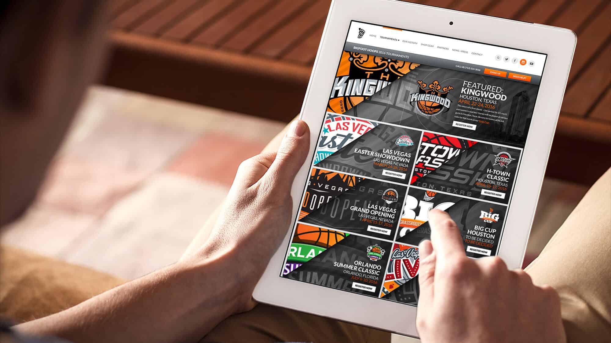 As the Bigfoot Hoops brand matured, so did the need to match the overall look, user experience and flow of the website. There were key components to ensure the user could easily navigate throughout the content. This included scheduling, past event highlights, gear and strategic corporate sponsors. The videos on the site needed to demonstrate the massive size of the tournaments and the volume of the teams.