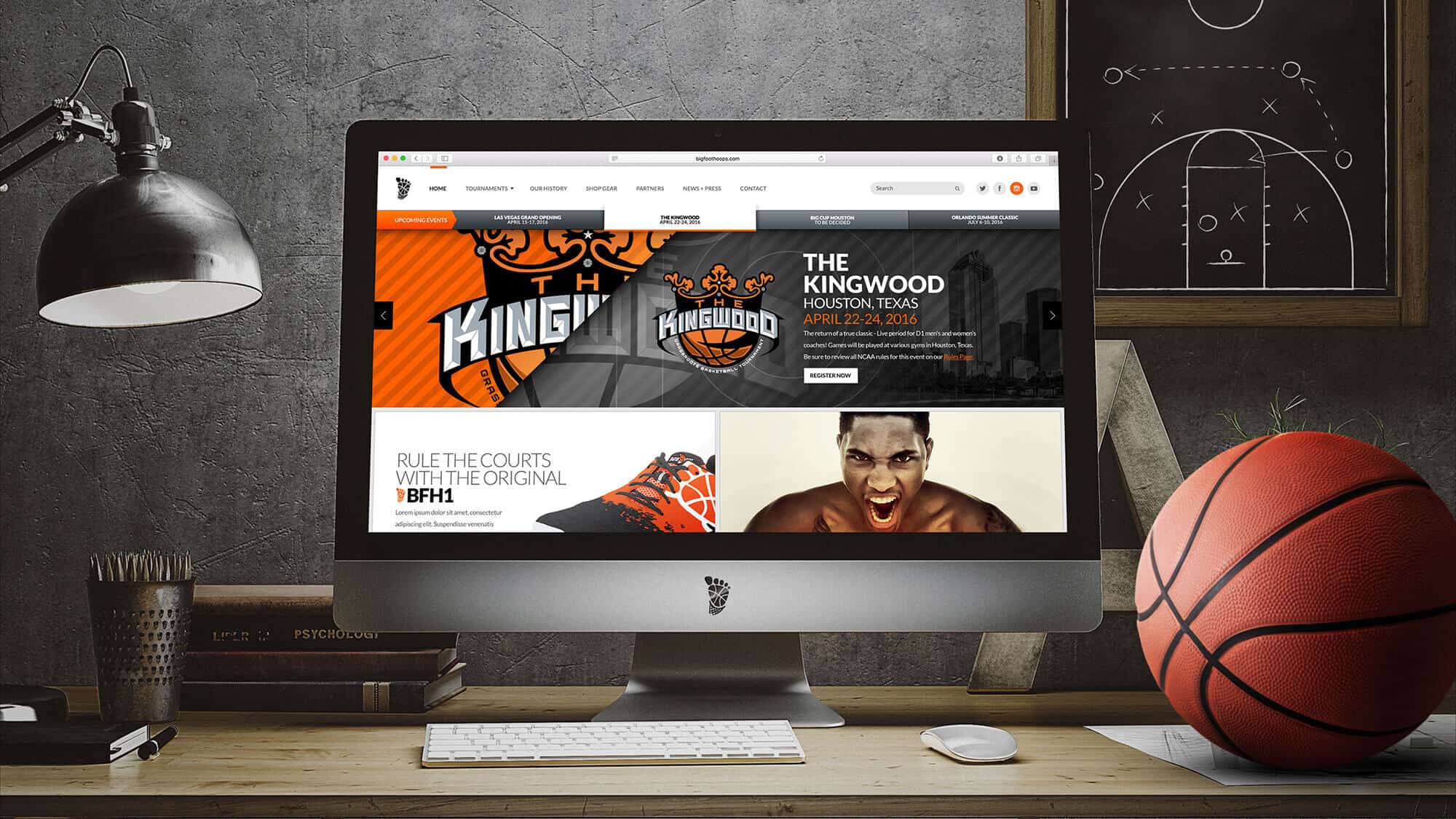 Bigfoot Hoops has been synonymous with college and NBA basketball for many years. Here, the concept was to elevate the motion of the players while highlighting the sophistication of the organization’s management and administration.